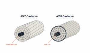 - Composite Core Conductors (ACCC and ACCR) replace the heavy steel core with a lighter, stronger composite material. ACCC uses a carbon fiber core, while ACCR uses an aluminum-matrix composite core.