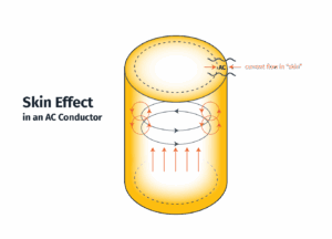 - Skin Effect: For AC power, current tends to flow on the outer surface or “skin” of a conductor, which increases its AC resistance and boosts power losses.